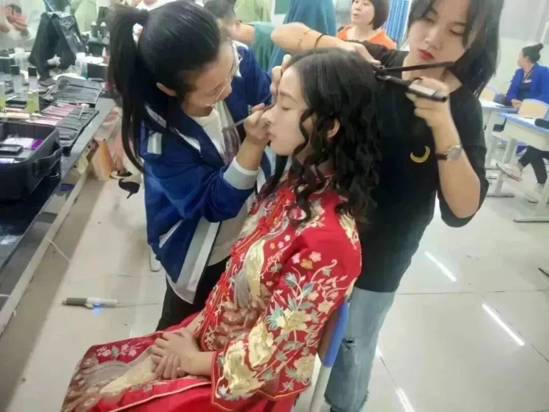 在赵潇老师的指导下,18级人物形象设计专业的学生两两一组,将课堂所学融于赛场,将抽签风格与模特自身特色融为一体,打造出最美模特。