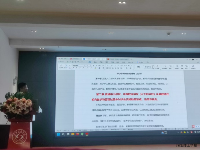 为强化教师职业道德素养、筑牢教育初心,绵阳理工学院于2025年3月28日在报告厅成功举办“教师职业道德”专题培训。本次培训由优秀教师贾老师主讲,通过案例分析、情景模拟、法规解读等多元化形式,为全体教师带来了一场既有理论深度又具实践温度的师德教育课。